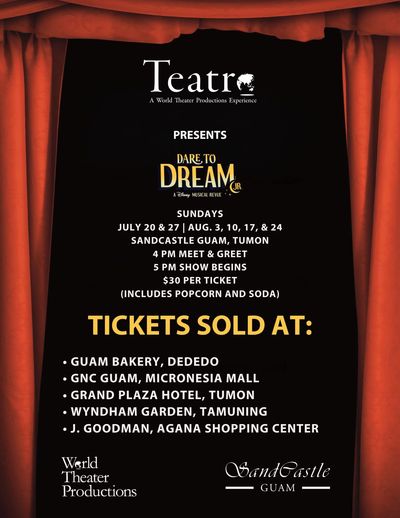 World Theater Productions in association with Guam Philharmonic Foundation, Incorporated presents Les Misérables School Edition, RENT, Mamma Mia!, Frozen JR., Moana JR. , Miss Saigon, Beauty and the Beast, The Lion King Jr., and Dare to Dream Jr. is presented through special arrangement with Music Theatre International (MTI). All authorized performance materials are also supplied by MTI. www.MTIShows.com